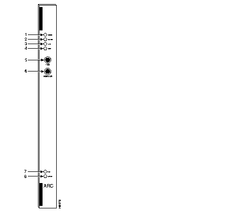 The ARC front panel contains the alarm LEDs and ACO and History Clear push buttons as well as active and fail LEDs (for status of the ARC card). See Figure 1-52 and Table 1-36. The ARC card is used in conjunction with an ARI card and communicates with it by using a UB-120 Utility Bus. Relay drive signals originate in the ARC to operate relays on the ARI.