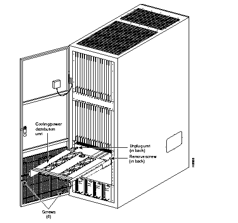 Step 1 From the back of the cabinet, unplug the power cord from the ac power source receptacle on the cooling unit.