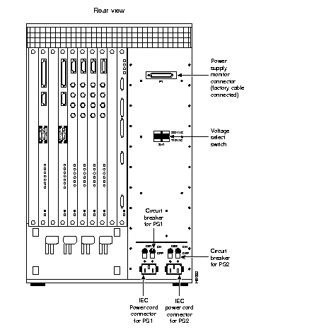 There is a separate power cord and circuit breaker for each of the power supplies for connection to separate power sources. These should be connected to separate outlets in the utility facility. A cable clamp is provided as part of each of the two power cord receptacles to prevent the power cords from accidentally becoming disconnected. Connector P1 is used to carry power sense leads to the SCC where the voltages are monitored. It is not a customer connection.
