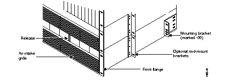 Step 2 For the bottom fan tray, remove the air intake grille at the front of the system by turning the internal screw at the top-center of the grille a quarter turn, tilting the grille forward, and lifting it out. (Fan Tray 2 at the upper end of an IGX 32 does not have an air intake grille.)