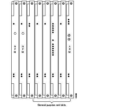To maintain correct air flow and reduce Radio Frequency Interference (RFI) and Electromagnetic Interference (EMI), all unused back card slots must be covered with the blank faceplates that StrataCom provides.