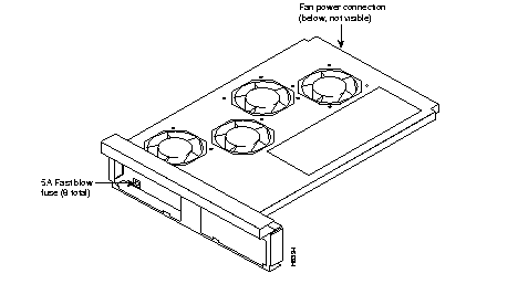 Mounted fans in a fan tray cool the system. In an IGX 8, the fan tray with four fans resides immediately below the card cage. Figure 2-18 shows the IGX 8 fan tray. In an IGX 16 or 32, a fan tray sits immediately below the card cage and, if the system uses AC power, above the power supply module. An IGX 32 also has a booster fan tray above the upper card cage. Figure 2-19 shows front and back views of the fan tray for an IGX 16 or 32.