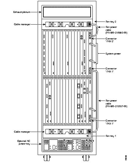 An exhaust plenum resides at the top of each unit. Cooling air for the cards enters through a grille on the front of the fan tray beneath the card cage and exits through the rear of the exhaust plenum. In an IGX 32, the booster fan tray has no grille.
