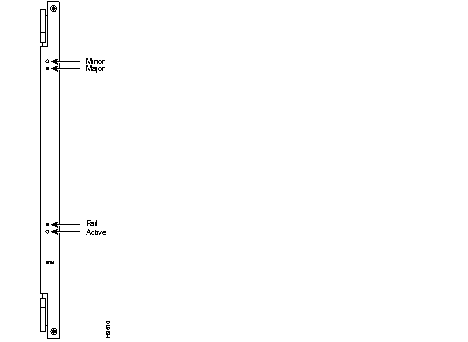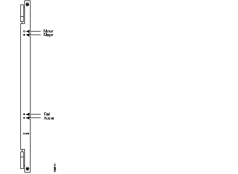 The faceplate of the ALM/B has four LEDs. See Figure 3-13 .The ACTIVE LED indicates the card is active and functioning. An ALM/B card failure triggers the FAIL LED. The other two LEDs are a summary alarm for the back card conditions. A yellow MINOR LED indicates either a fault that does not interrupt service or that error statistics have exceeded a preset threshold. A red MAJOR LED indicates a service-affecting failure.