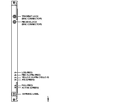 The AIT -T3 back card has two BNC connectors and six LED indicators, as Figure 3-9 shows. Table 3-12 lists these faceplate items. When you correlate the items in the figure and table, read from the top.