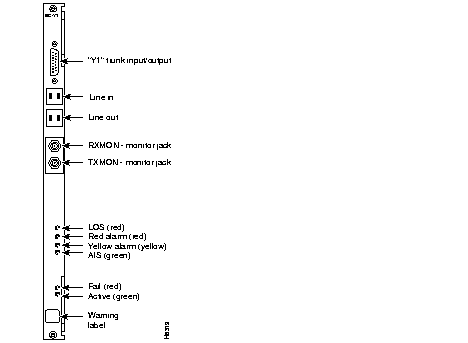 A back card provides the interface to the trunk line and performs all CRC generation and checking. Its faceplate has six LEDs to indicate alarm conditions and the port status. The BTM back cards are: