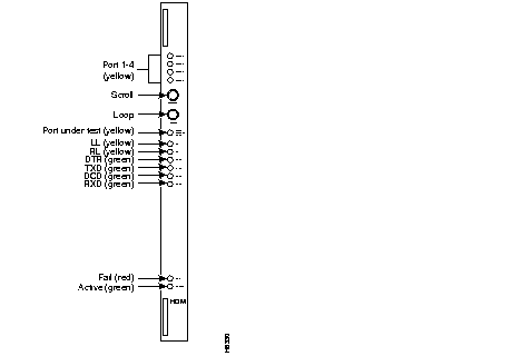 | PORT UNDER TEST light (yellow) | Indicates that a port has gone into the loopback mode. If this is not the current port, push the SCROLL button to toggle in the port being tested. |