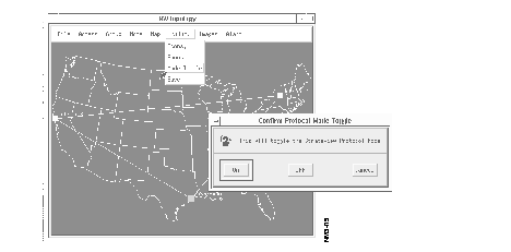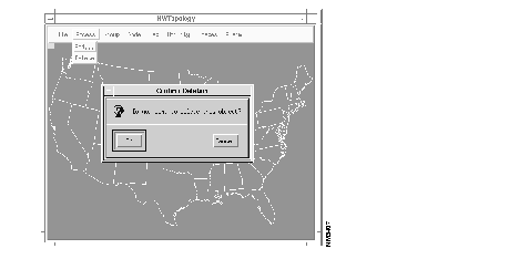 Use this menu to remove a selected access node from the topology map. The Access-Delete command converts your cursor to a skull-and-crossbone symbol. Use this cursor to select the node targeted for deletion.The Confirm Deletion dialog window appears following your selection. Click he OK button on this window to complete the delete process.