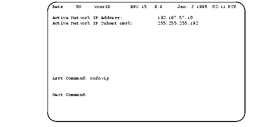 The cnflan command configures the node's communication parameters so that the node can communicate with a StrataView Plus terminal over an Ethernet LAN using the TCP/IP protocol. The parameters contain address information about the Ethernet TCP/IP network that is used to connect the StrataView Plus station to an IPX or BPX node. The values used must conform to those of the network and should be supplied by the Ethernet network administrator.