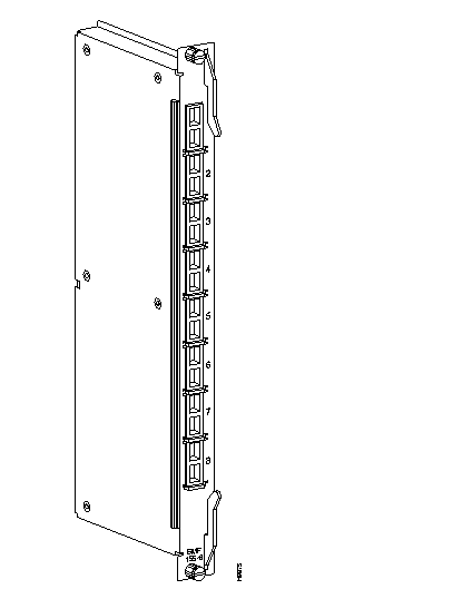 The BXM-155 is available in four or eight port versions in a choice of multi-mode fiber (MMF), single-mode fiber intermediate range (SMF), or single-mode fiber long range (SMFLR) backcards. Connector information is listed in Table 6-6 and an 8-port SMF card is shown in Figure 6-6.