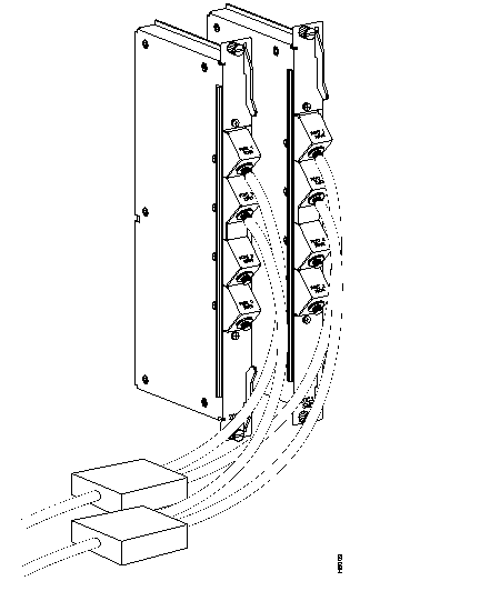 Remember as shown in Figure 6-3, the Y-cables are connected from the TX (transmit) connector on the ESP ATM NIC to the RX (receive) connector on the two BXM backcards. Also, the RX (receive) connector on the ATM NIC will be connected to the TX (transmit) connectors on the two BXM backcards. Figure 6-4 shows a sample of the Y-end of the cables connected to BXM backcards. BPX cards must be configured for Y-cable redundancy using the addyred BPX command.