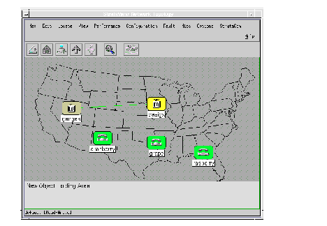 The StrataView NMS displays a map of the network topology indicating where the nodes are located and the packet trunks that provide the connections between the nodes (refer to Figure 7-2). This topology map displays, in color, any network faults detected by the system.