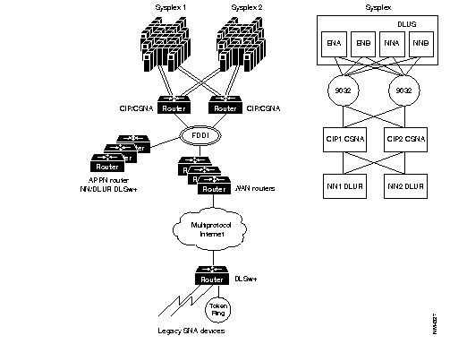 There are two CIP routers to support every Sysplex environment and at least two APPN routers running DLUR to provide boundary functions support for remote devices. The traffic is expected to load share across the two CIP routers. Consequently, APPN provides load balancing and redundancy in this environment.