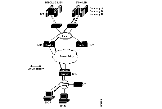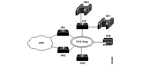 Figure 6-6 shows the physical view of an APPN network. In this network NN1, NN2, and NN3 are routers attached to an FDDI LAN.