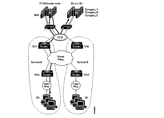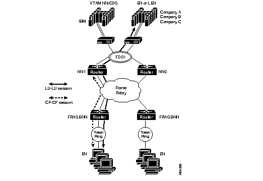 If the APPN network is based on a Frame Relay network, one option is to use the FRAS/BNN or the Frame Relay BAN function for host access. Both BNN and BAN allow a Cisco router to attach directly to an FEP. When you use FRAS/BNN, you are assuming that the Frame Relay network is performing the switching and that native routing is not used within the Frame Relay network. For an example of how APPN with FRAS BNN/BAN can be used in your network design, see the section "Example of APPN with FRAS BNN" later in this chapter.