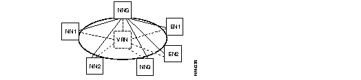 By using the concept of Connection Networks, you can eliminate the transmission group definitions, and therefore reduce TDU flows. A connection network is a single virtual routing node (VRN), which provides any-to-any connectivity for any of its attached nodes. The VRN is not a physical node, it is a logical entity that indicates that nodes are using a Connection Network and a direct routing path can be selected.