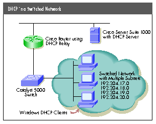 Cisco's DHCP server resolves this limitation by allowing network administrators to chain multiple subnets into a single address pool. In addition, Cisco Internetwork Operating System (Cisco IOSTM) software supports a feature called DHCP relay, which allows the DHCP server to respond to broadcast requests for configuration information from remote nodes. DHCP relay ensures that a centralized DHCP server provides an appropriate address for the subnet on which the node resides. As a result, one DHCP server can dynamically address thousands of IP nodes automatically and centrally with no manual intervention--even with the largest and most complex networks, including those relying on Cisco's CatalystTM 5000 workgroup switch.