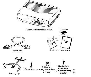 The box that contains your hub should contain the following items. If any of the items are missing or damaged, contact your Cisco reseller.