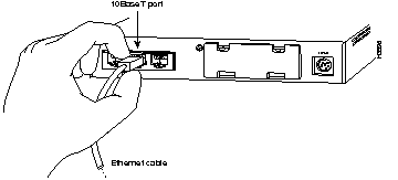 Step 1 Connect an Ethernet cable (not provided) to the 10BaseT (Ethernet) port on the router. You'll need a straight-through Ethernet cable if you're connecting to an Ethernet concentrator (or hub). Or you'll need a crossover Ethernet cable if you're connecting to a personal computer (PC) Ethernet network interface card (NIC).