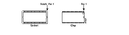 The DRAM chip uses a notch or small circle to indicate the location of pin 1, as shown in Figure 6-3. The socket is also notched to show the location of pin 1.