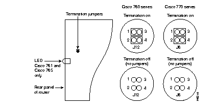 This appendix describes how to turn termination on and off for Cisco 761, Cisco 765, Cisco 771, and Cisco 775 routers.