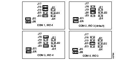 Figure 3-3 illustrates how to set the different combinations of COMports and IRQs for the Ethernet AccessPro card. Figure 3-4 illustrates how to set the different combinations of COMports and IRQs for the Token Ring AccessPro card.
