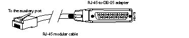 An RJ-45, asynchronous serial, auxiliary port is included on all AccessPro cards. This is a DTE port to which you can attach a CSU/DSU or protocol analyzer for network access. This port connects to external equipment using an RJ-45-to-DB-25 adapter, shown in Figure 2-5. The appendix "Cabling Specifications" lists the pinouts for the auxiliary port.