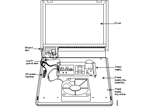 Step 1 Locate the DC power harness on the far left edge of the power supply tray assembly. (See Figure 2.) Detach the DC power harness from the system card under the power supply tray assembly using the pull tab on the DC power harness.