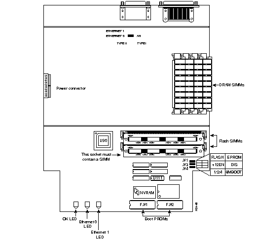 Figure 3 shows the location of the Flash SIMMs on models 3104 and 3204 system card. The socket closest to the boot ROMs must contain a SIMM when a single Flash memory SIMM is used.
