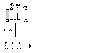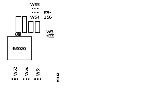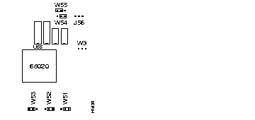 Step 6: Change the jumper settings on jumpers W51 - W55 as indicated in Figure 3-3, Figure 3-4, Figure 3-5, or Figure 3-6. Jumpers W51 - W53 are located next to the EPROMs. Jumpers W54 - W55 are located below the MC68020.