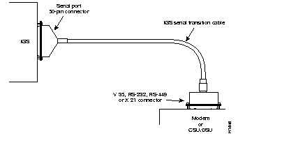 You must use a special serial cable to connect the IGS/TR to a modem or CSU/DSU, as shown in Figure 1-2. This cable is available from Cisco Systems; see Chapter 4 for cable specifications.