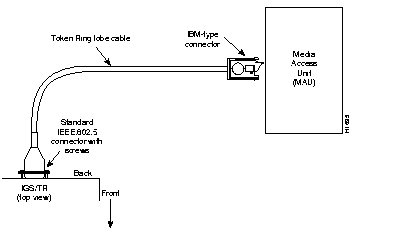 The Token Ring port is located to the right of the serial port. Use a standard 9-pin Token Ring lobe cable to connect the IGS/TR directly to a Media Attachment Unit (MAU), as shown in Figure 1-1.