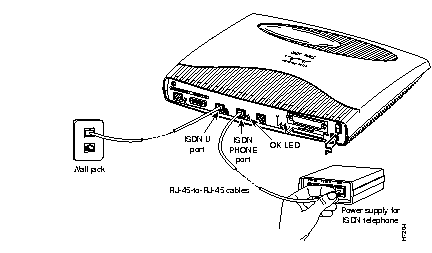 This example procedure describes how to connect an AT&T ISDN telephone (model ISDN 8510T) and an AT&T external power supply (model MSP-1) that supplies power to this telephone. Depending on the model of telephone and power supply that you are installing, the procedure for connecting the telephone and power supply could differ slightly from the one shown in this section.