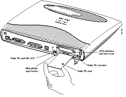 ![]() | Caution Do not remove the Flash PC card while the router is operating. The router cannot operate without the Flash PC card. |