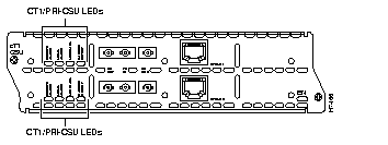 Figure 23 and Figure 24 show CT1/PRI-CSU module LEDs.