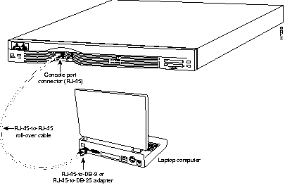 Step 1 Connect the terminal using an RJ-45 rollover cable and an RJ-45-to-DB-25 or RJ-45-to-DB-9 adapter. (See Figure 3-37.) The provided adapter is labeled Terminal. For information about cable pinouts, see the appendix "Cable Specifications."