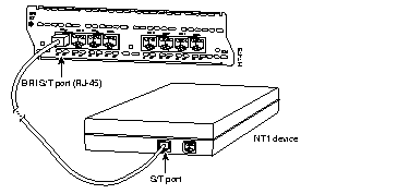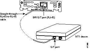 Step 2 If you have a BRI-S/T WAN interface card or a BRI-S/T module installed in your router, use a straight-through RJ-45-to-RJ-45 cable to connect the ISDN BRI port to an NT1. (See Figure 3-26 and Figure 3-27.)