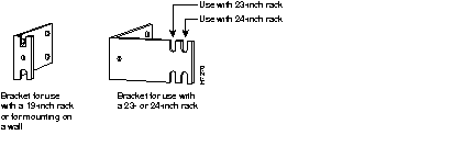Each router is shipped with one set of brackets. The router uses 19-inch rack brackets to mount on a wall. 23-inch or 24-inch brackets may be used for wall mounting if desired. Brackets for 19-inch racks are shipped unless you specify 23-inch or 24-inch brackets at the time of your order. Figure 3-12 shows brackets for the router.