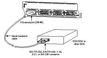 Step 1 If you have a serial WAN interface card or an A/S serial module, use a serial transition cable to connect a serial port (DB-60) to a modem or to a CSU/DSU. (See Figure 3-24 and Figure 3-25.)