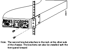 To install the chassis in a rack with the front panel forward, attach the brackets on each side of the chassis as shown in Figure 3-2 or Figure 3-3.