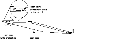 Step 1 Verify that the Flash memory card is set to write-protect off. The write-protect switch is at the top left edge of the card, when you view it with the label side toward you. (See Figure A-12.)