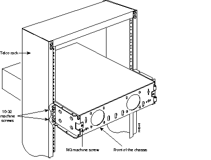Step 1 Partially thread two 10-32 machine screws into one side of the telco rack with enough space to allow one side bracket to fit (see Figure 16).