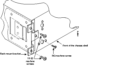 Step 3 Mount the front of the chassis shell in the rack using two 10-32 machine screws on each side of the front brackets.