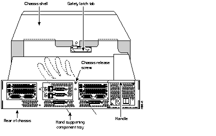 If you have a chassis with a safety latch tab, follow the procedure in the next section "Removing the Component Tray from a Chassis with a Safety Latch."