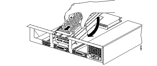 Step 3 Holding the module at an angle with its faceplate lower than the other end, slip the upper 200-pin connector through the opening in the back panel of the chassis. Make sure the flange of the module extends over the top of the chassis.