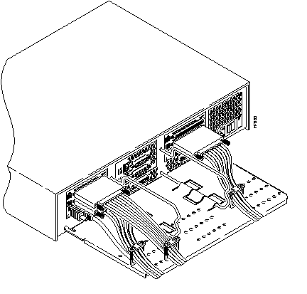 Because of the bulk of the low-speed serial cables, a cable support tray must be used in conjunction with the 2T16S network processor module. (See Figure 21.)