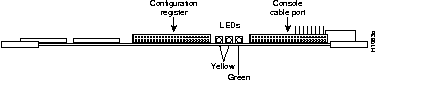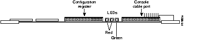 The LEDs on the CCTL2 card indicate when an interface is present in a ciscoBus slot. The front edge of the CCTL2 card contains a bank of five LEDs as shown in Figure 2: one red LED for each slot in the ciscoBus and one green OK LED to indicate a successful boot procedure. One red LED will be on for each correctly connected ciscoBus card using the correct version of microcode. The green OK LED will not be on if the card is incorrectly connected or if the microcode on that ciscoBus card is the wrong version. Figure 2 shows the LEDs on the CCTL2 card. The numbers above the LEDs (0 through 3 from right to left) indicate the ciscoBus slot number assigned to that LED.