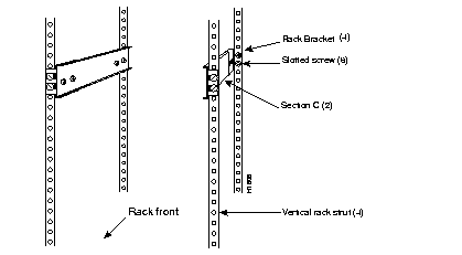 Step 1: Using the large slotted screws, attach the slide assemblies to the rack struts as shown in Figure 1, and adjust the rear brackets between the rack struts.