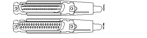 The HD V.35 cable is available in four models: DTE male to male, DTE male to female, DCE male to male, and DCE male to female. The chassis connector (shown at the top of Figure 3-2) is always a male HD-26 connector, while the network end can be a male or female Winchester-type 34-pin connector.