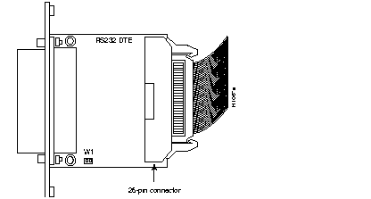 The RS-232 DCE and DTE appliques have either a female (for DCE) or male (for DTE) 25-pin D-type connector. The mode is fixed for each applique and printed on the applique. (See the DTE applique in Figure A-7.) The internal ribbon cable attaches to the 26-pin connector. Table A-9 lists the pinouts for the RS-232 DCE and DTE appliques.